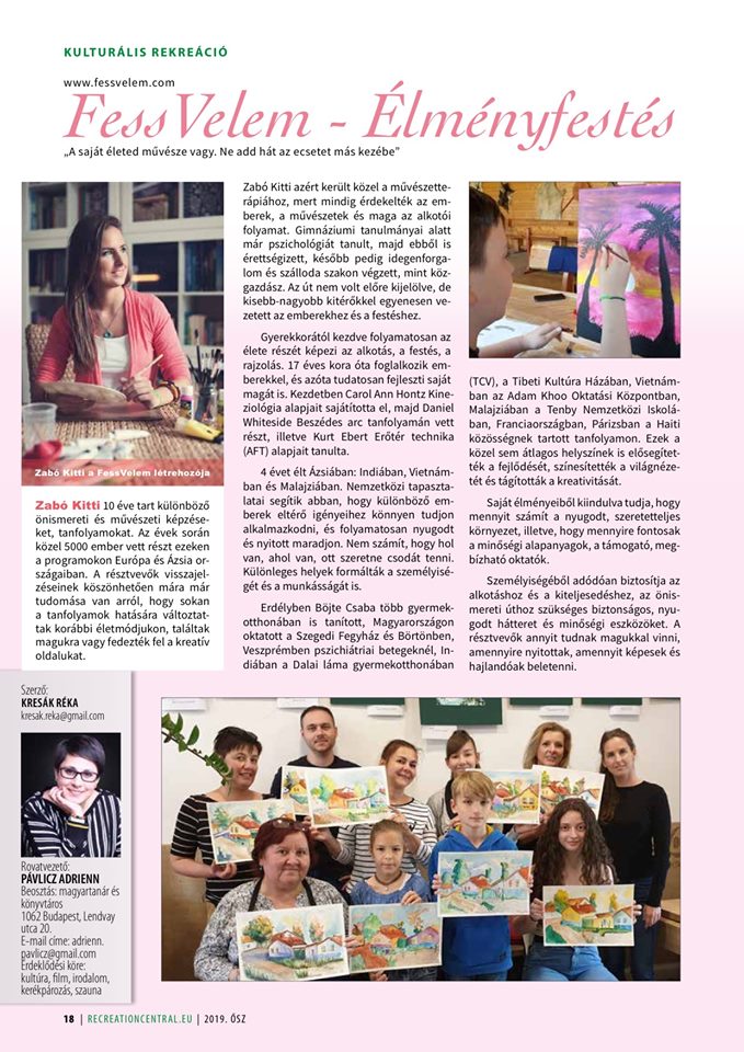 2022. Áprilisában az Egy.hu készített velem riportot a Szegedi fegyházban tartott tanfolyamokról:https://egy.hu/szocio/a-bortonben-is-szabadsagot-ad-az-alkotas-interjunk-zabo-kitti-muveszetterapeutaval-110487